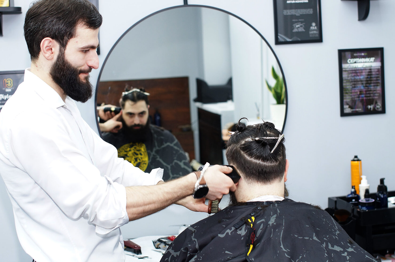 Чтобы выбрать правильную и стильную стрижку, сформировать свой стильный образ из моря современных вариантов мужских причесок, необходимо обратить к профессионалам, которые знают все секреты и нюансы мужского шарма. Имея богатый опыт работы они могут точно подобрать нужный вариант стрижки. Приходите в наш салон BlackBow, который расположен в самом центре славного города Мытищи, и окунитесь в теплую дружескую атмосферу полного преображения, чтобы подчеркнуть все грани красоты своего стиля. Примерь свой новый образ!